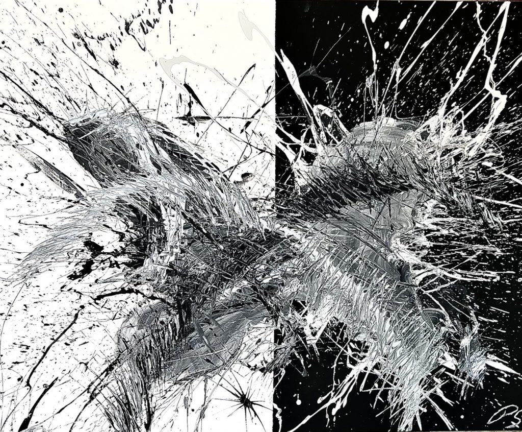 Acrylic, texture paste and ash on primed canvas